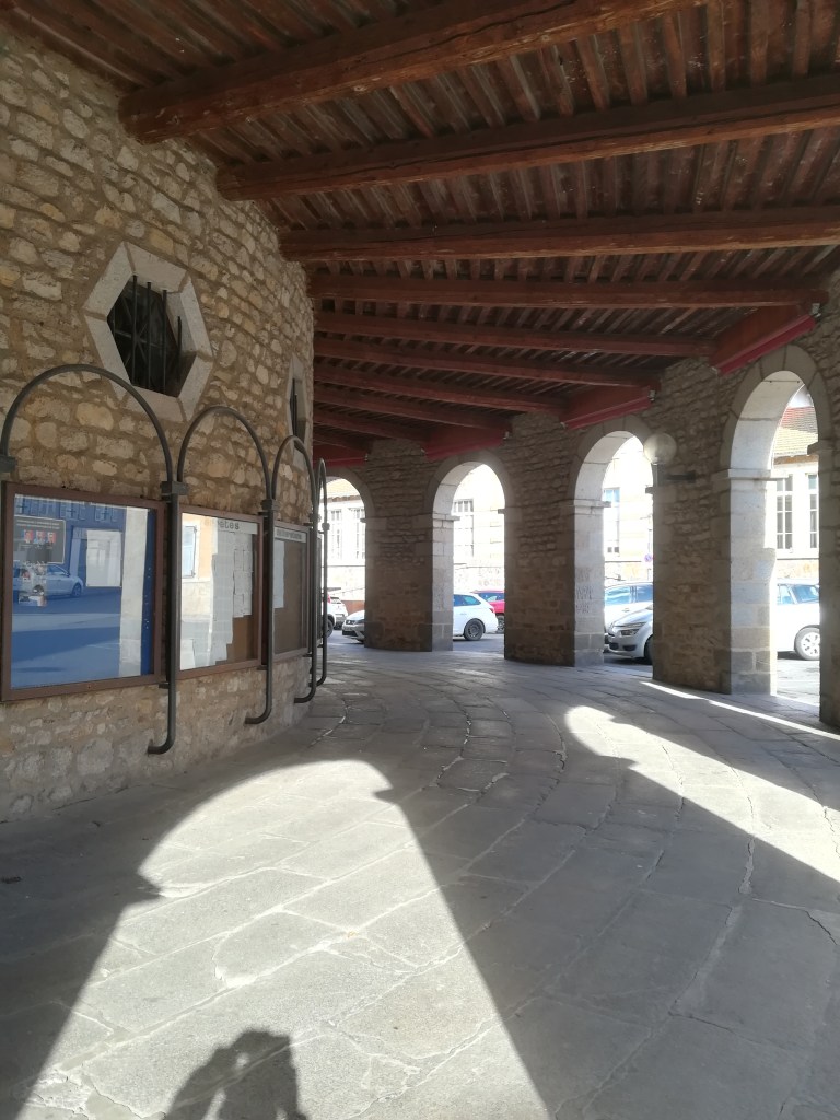 Unique en Europe, il fut érigé au début du XIXème siècle. Dès l’origine, au moins deux fonctions lui furent assignées : à la fois mairie (mais cette affectation sera repoussée de proche en proche jusqu’en 1827, faute de moyens) et marché aux grains dès 1816 alors que l’édifice demeure inachevé. L’insolite bâtiment dont le concepteur n’est pas connu de divise en deux parties : au rez-de-chaussée, une galerie ouverte sur la rue, qui servait de marché, et une salle centrale qui accueille des expositions temporaires, et à l’étage unique, des pièces réservées aux services de la commune, aux conseils municipaux, et une salle des mariages au centre.